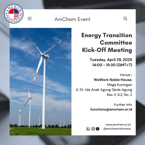 Your participation is vital in contributing to the development of AmCham Indonesia’s Energy Transition Committee, as we enter this crossroads in national energy policy.